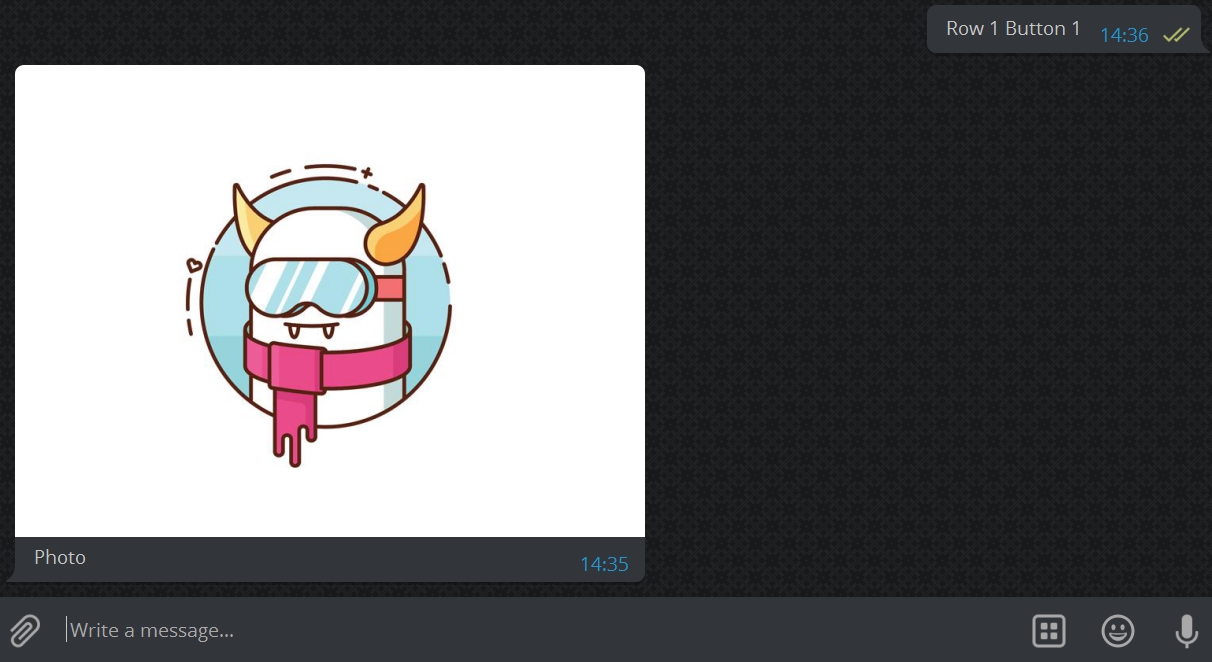 Now, when user press button with "Row 1 Button 1" text on it, bot will send picture by file_id