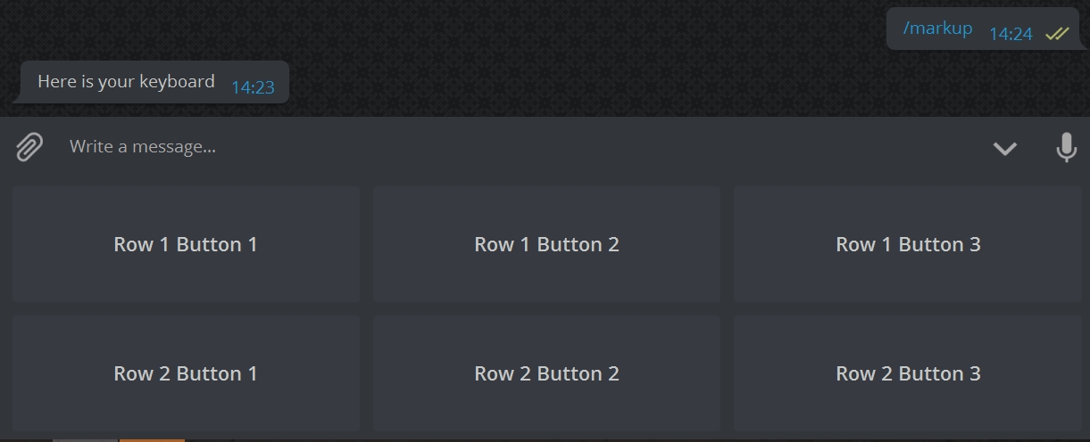 Now lets take a look at ReplyKeyboardMarkup. We will now create custom keyboard like this: